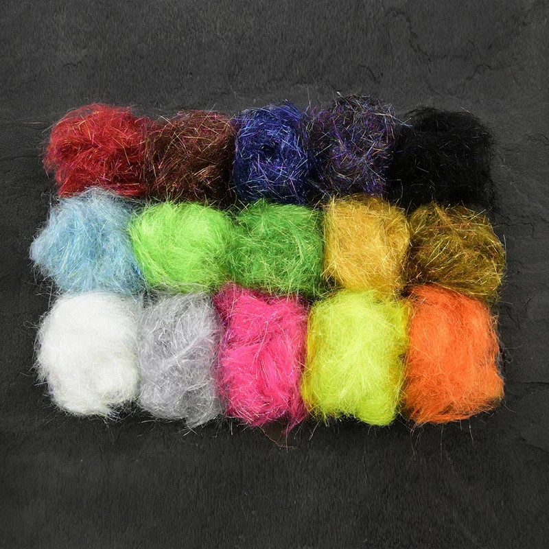 Als je het borstelt valt de helft van het materiaal eraf waardoor het onmogelijk is om de juiste glans te krijgen. De structuur van de SSS dubbing bestaat uit transparante synthetische vezels, geverfd en gemengd met de SSS Angel Hair mengsels.