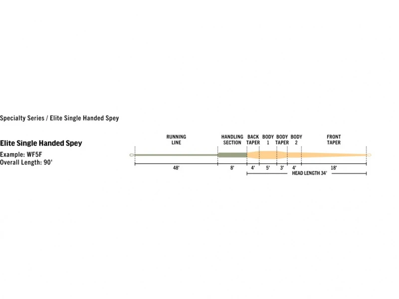 Rio Elite Single Handed Spey, Float Peach/Camo is een vliegenlijn ontworpen voor extra nauwkeurige en lange worpen en spey casts met SlickCast coating en een niet-stretch ConnectCore Plus kern. Een van de beste vliegenlijnen voor het vliegvissen met roll en spey casts!